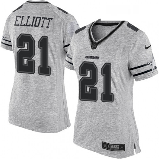 - Women's Dallas Cowboys 21 Ezekiel Elliott Limited Gray Gridiron II NFL Jersey